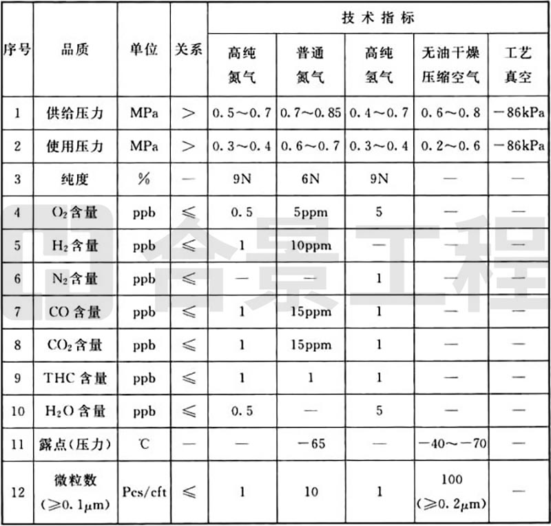 B.0.1 發光二極管生產工藝動力品質(氣體)要求可按表B.0.1執行。