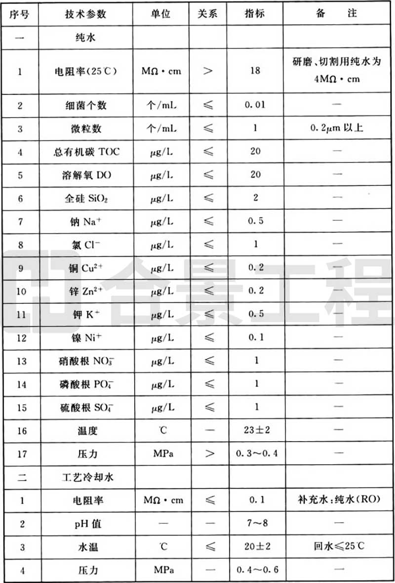表B.0.2 工藝動力品質(水)要求